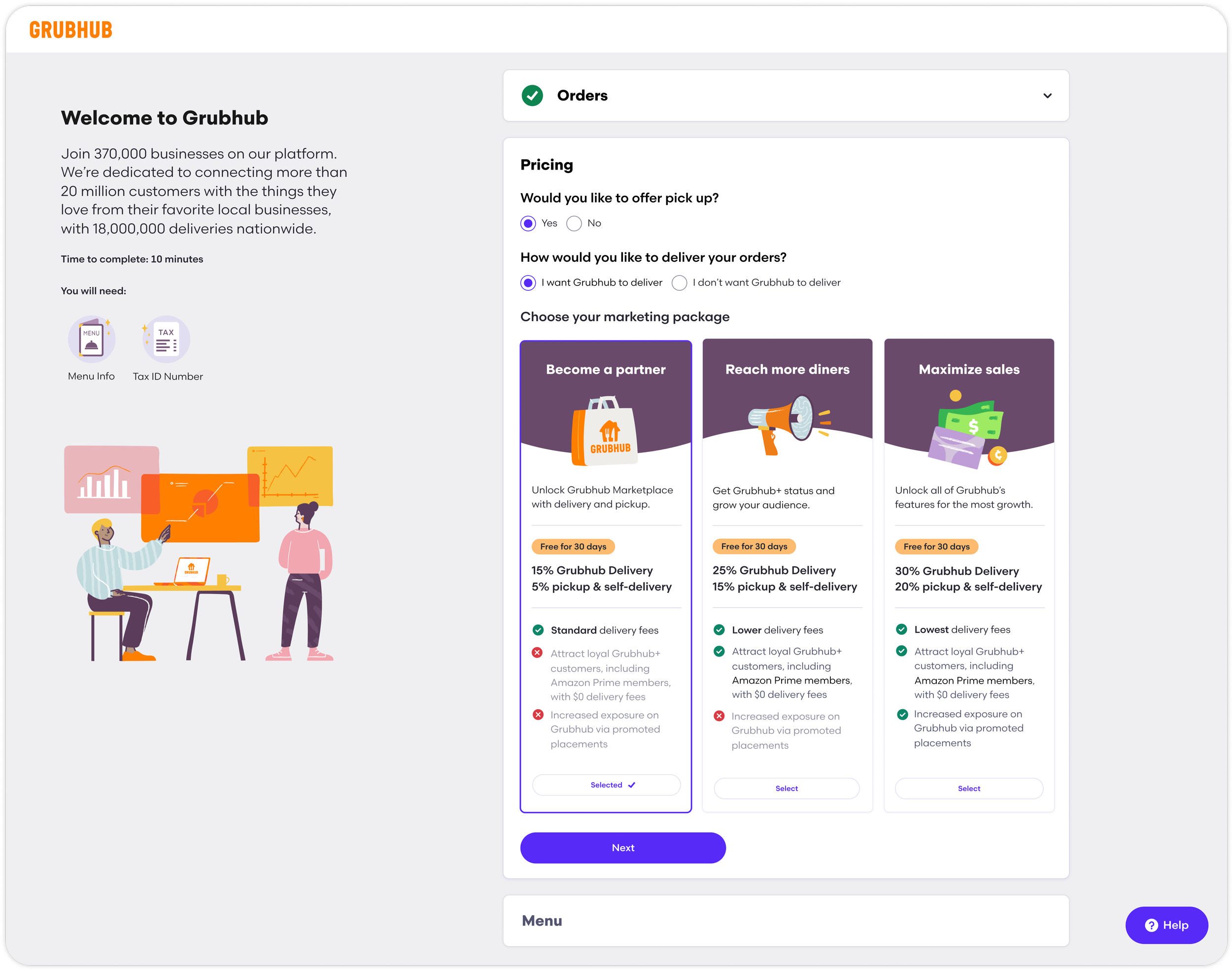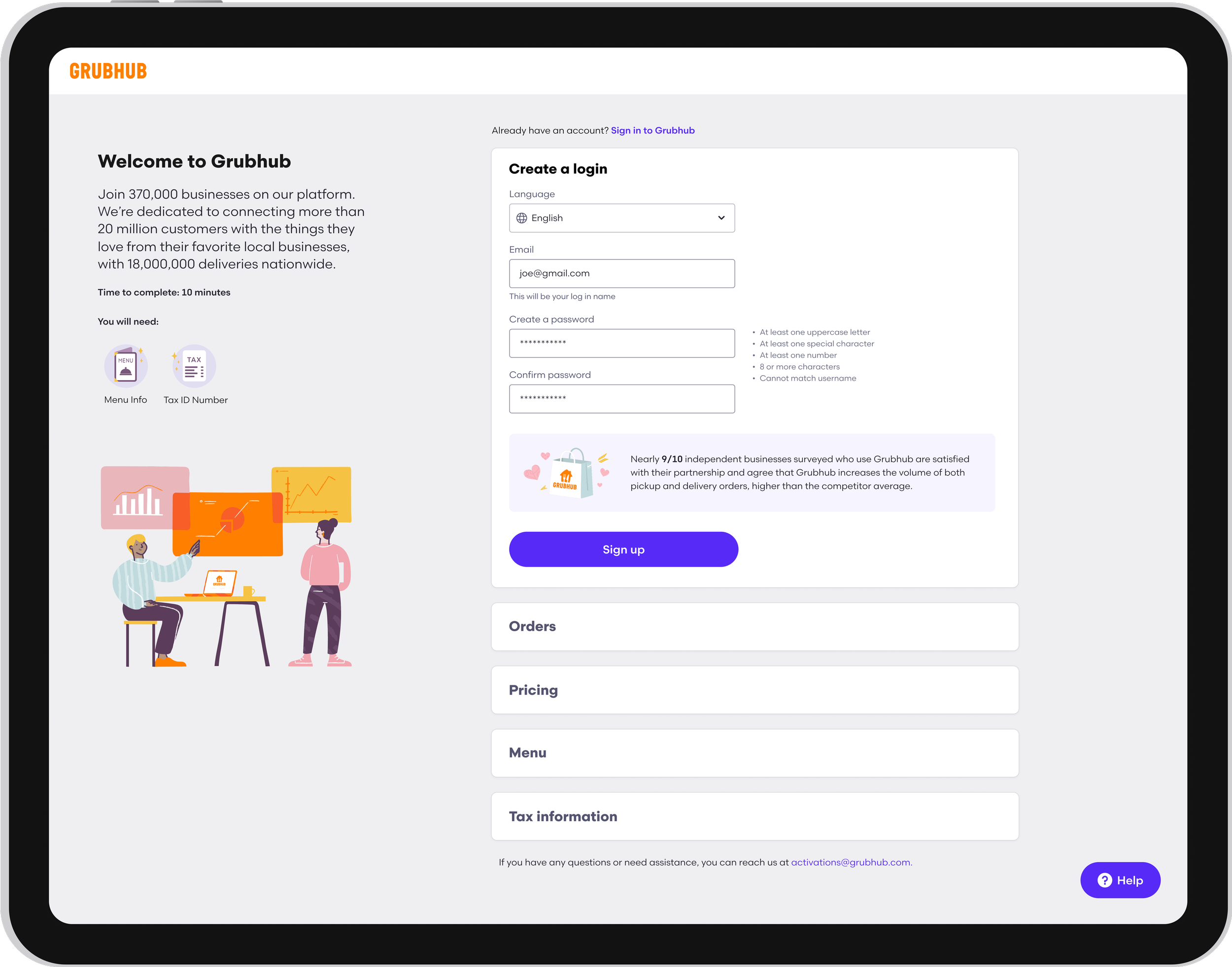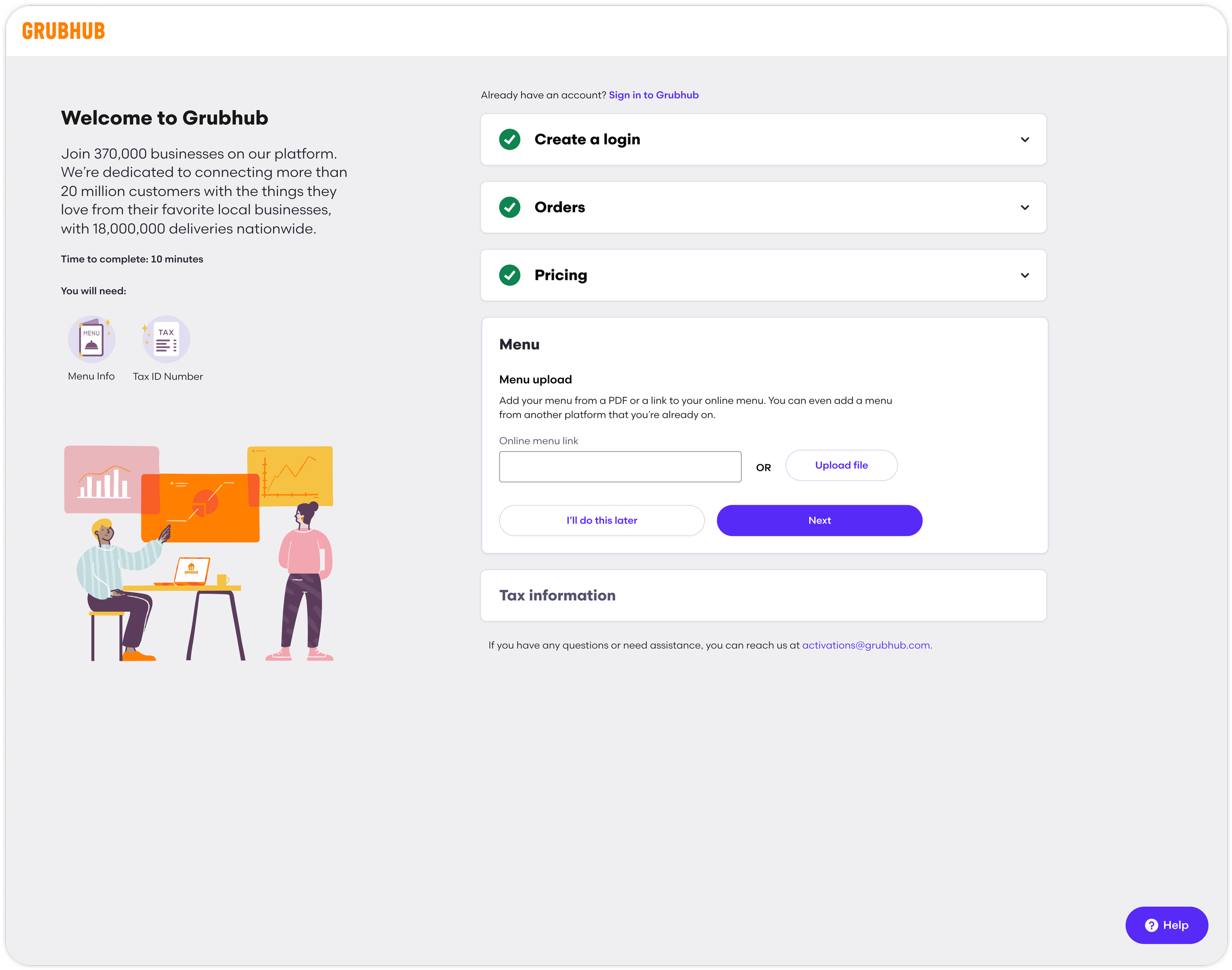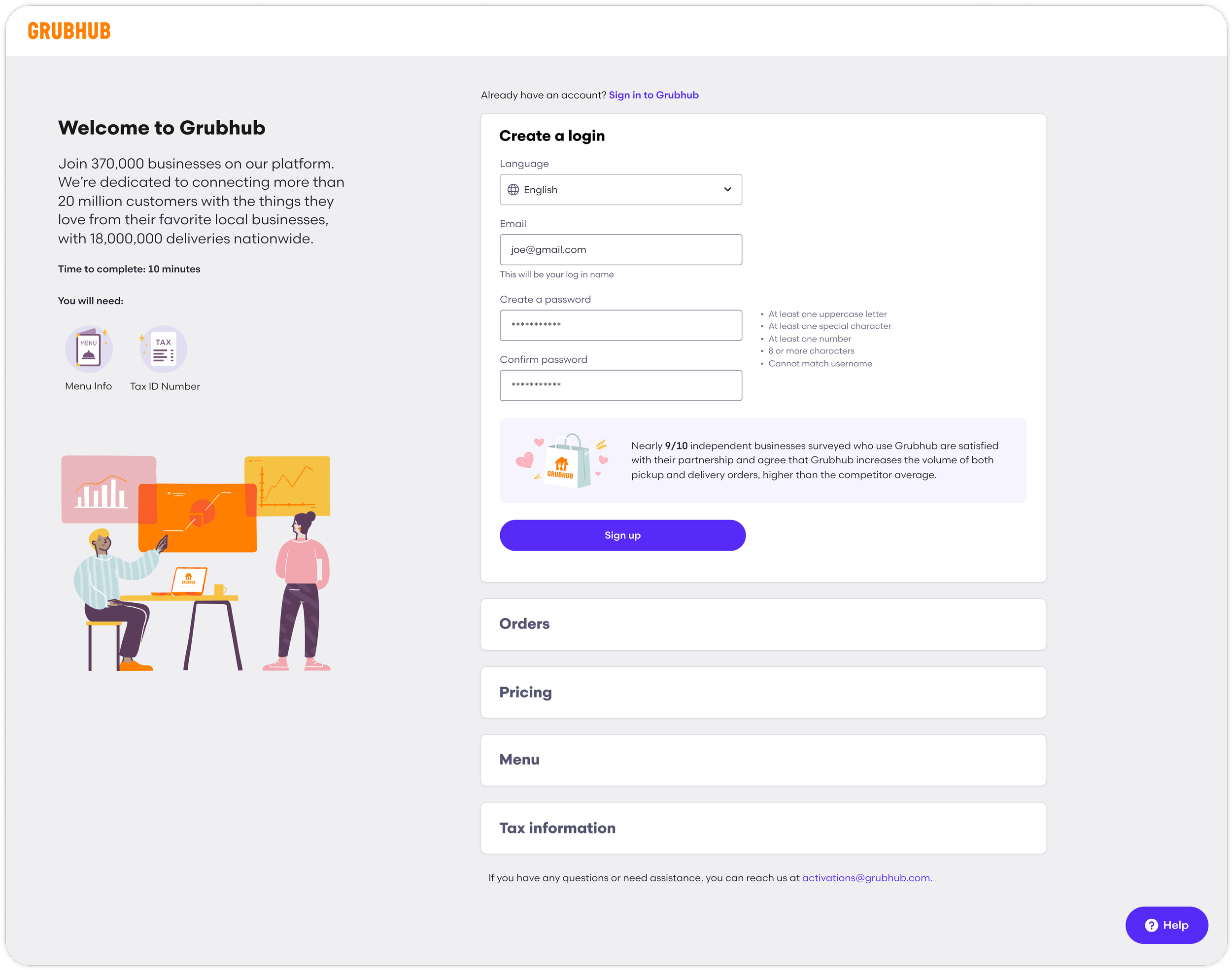 Optimizing Grubhub’s sign-up experience to allow merchants to join the Grubhub platform without the help of a sales representative