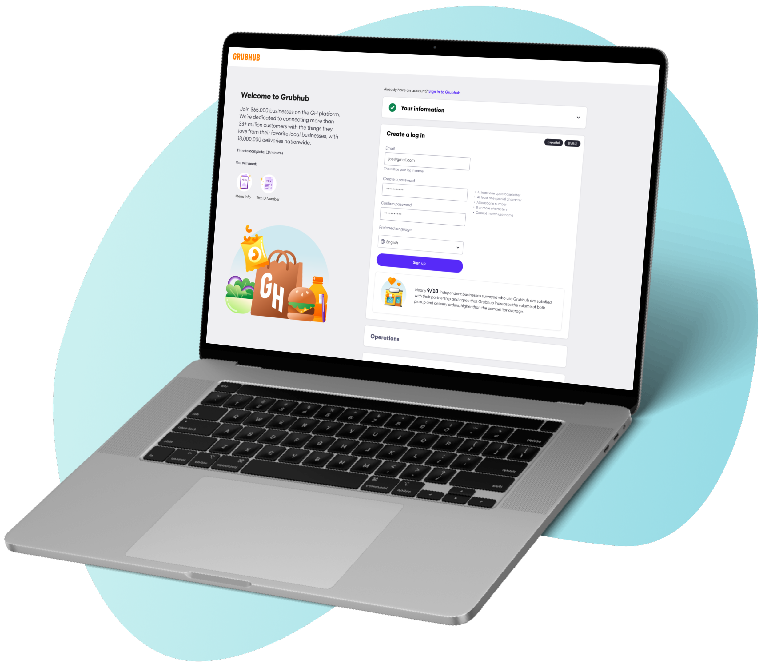 A redesign of Grubhub’s lead capture and onboarding experience that allows small-medium businesses to join Grubhub Marketplace without the help of a sales representative.