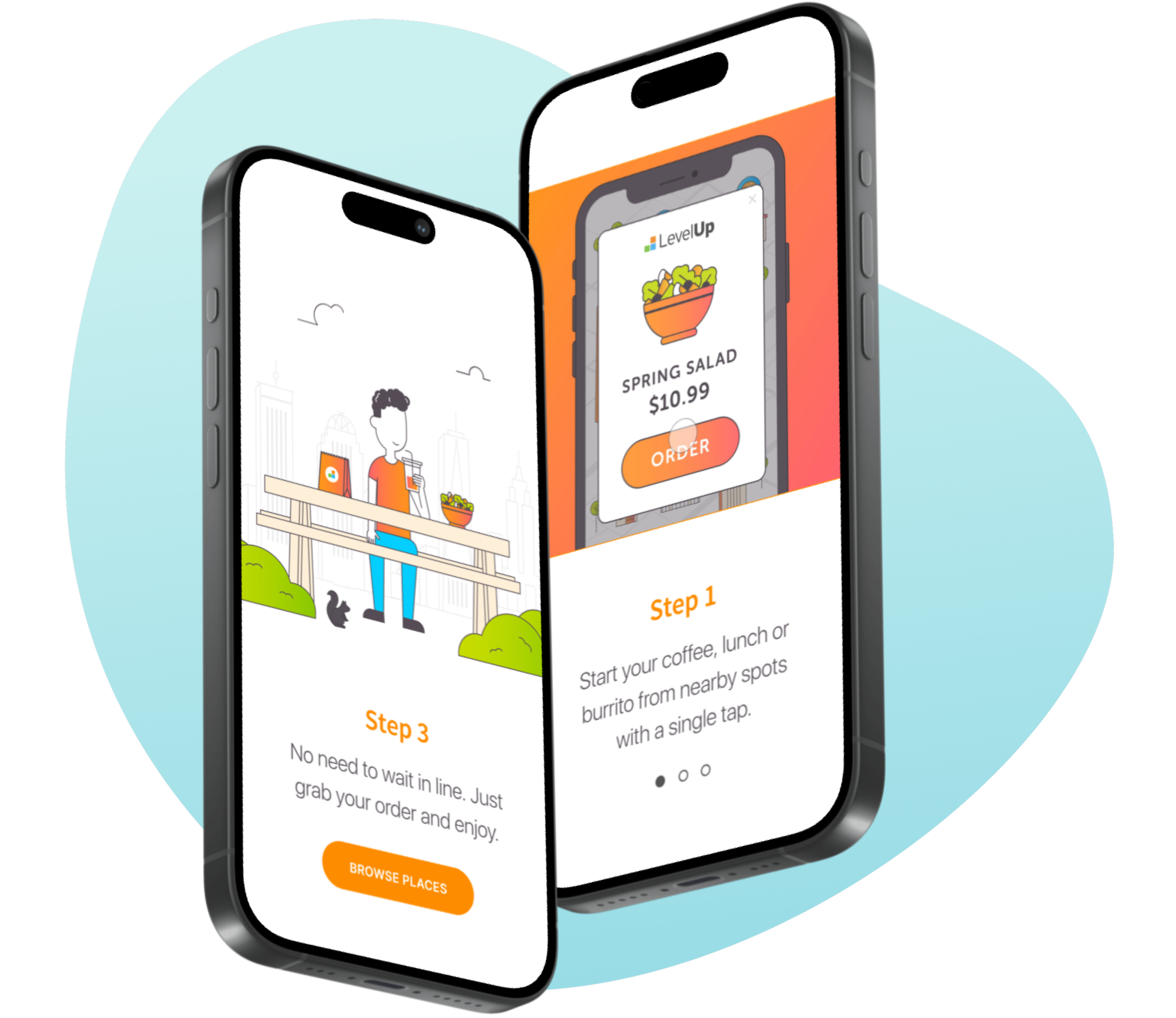 An animated onboarding tutorial that serves as a helpful guide to getting started with LevelUp, an app that allows users to order food for pickup from local restaurants.