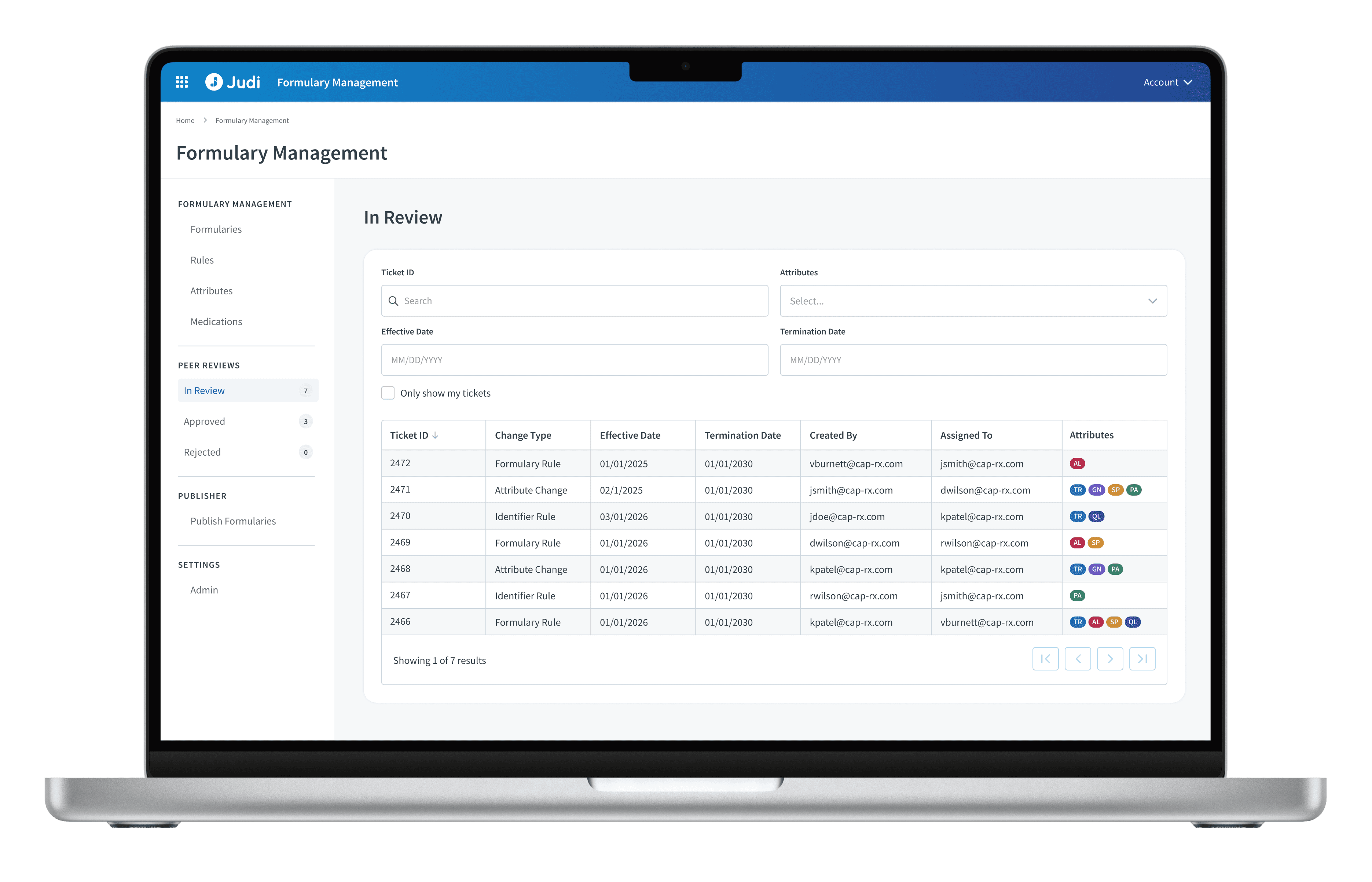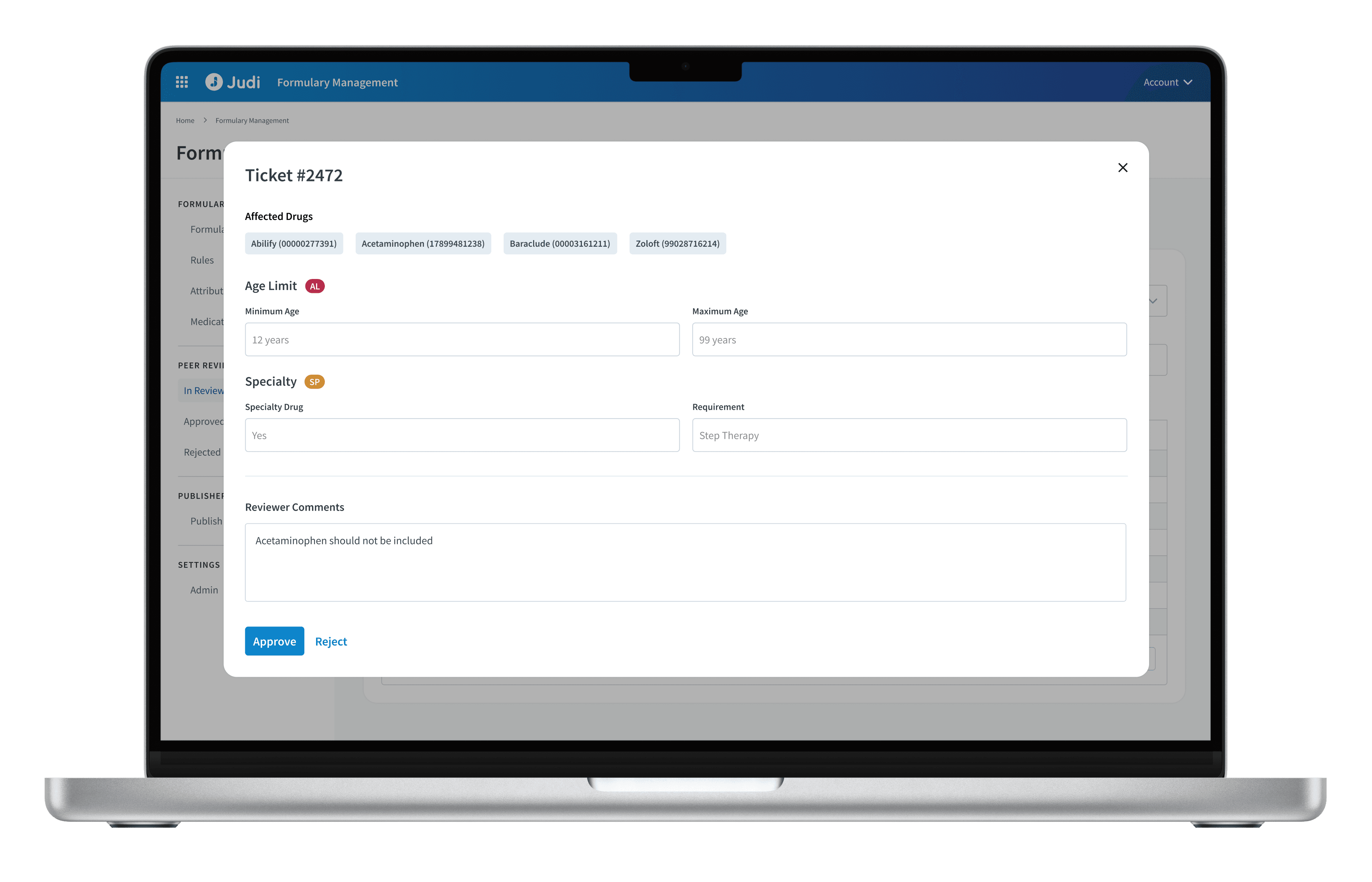 A streamlined peer-review process for evaluating coverage rules and changes before publishing a formulary. Built-in statuses and comment threads improve collaboration, reduce errors, and accelerate approval timelines.