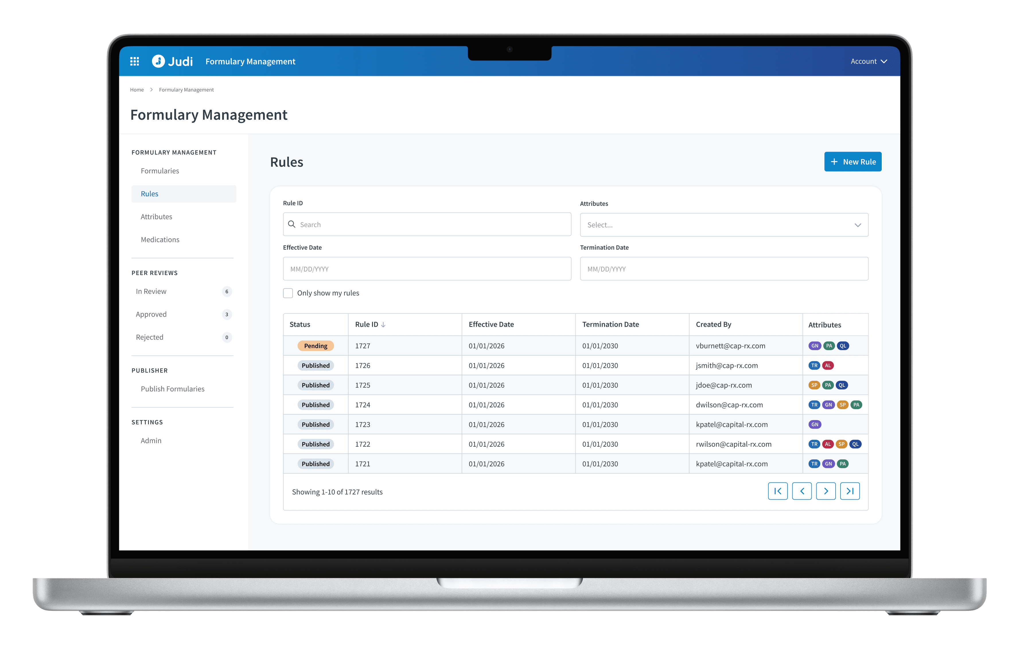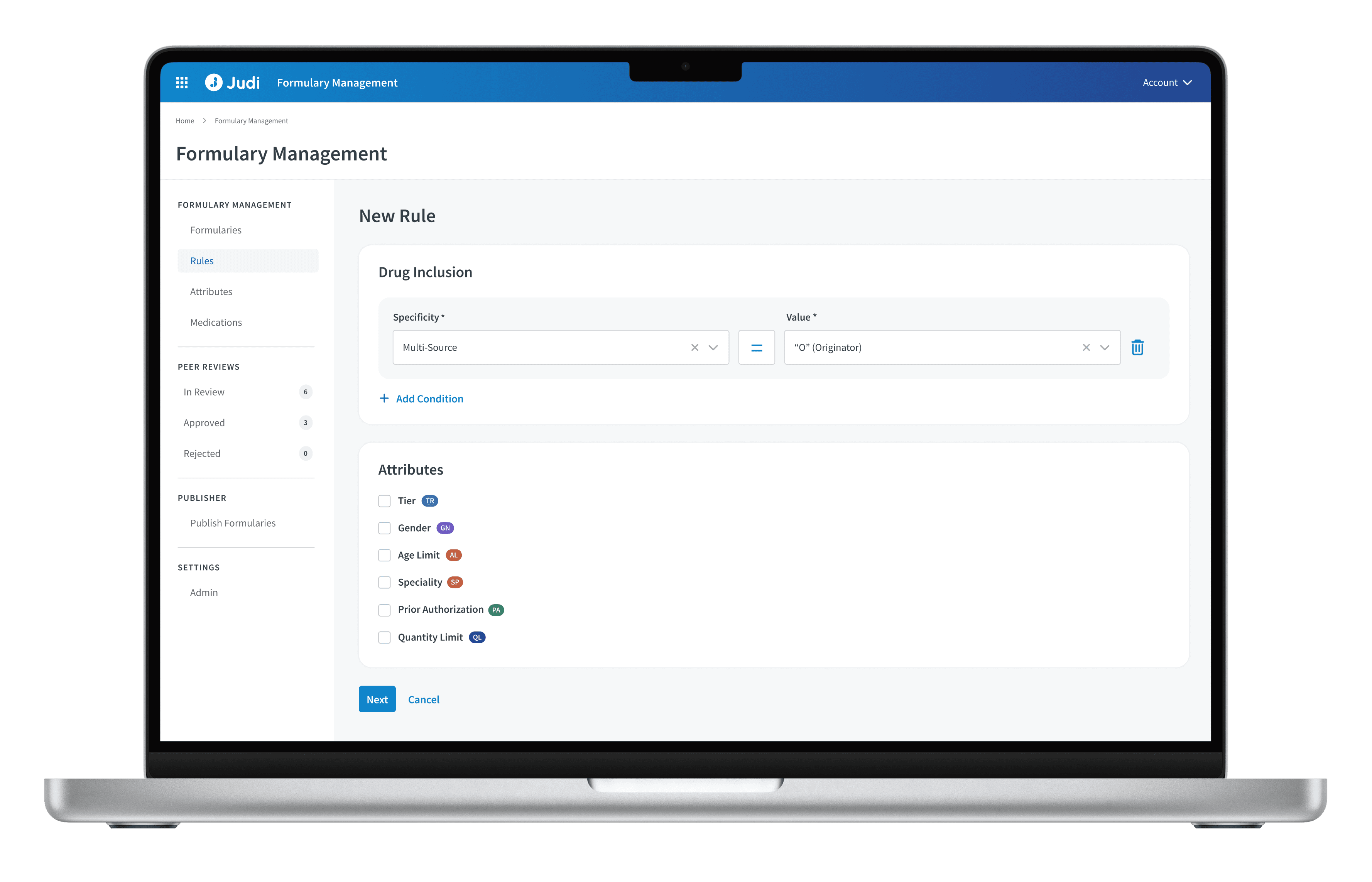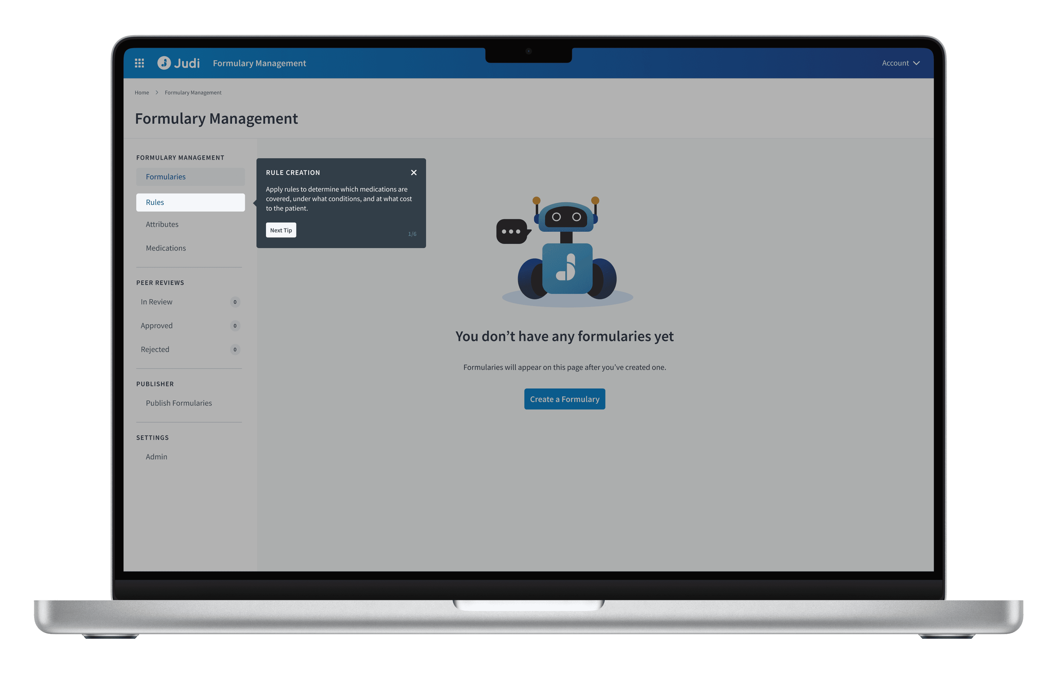We created a unique, intuitive tool to serve as a reliable platform for all formulary operations within Judi, providing user-friendly capabilities for formulary creation, management, and peer reviews.